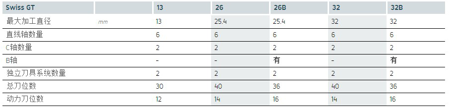 Swiss GT 26 和Swiss GT 32 可安裝高達(dá)40把刀具,包括14把動(dòng)力刀,而Swiss GT 13 可配備多達(dá)30把刀具,包含12把動(dòng)力刀。Y軸大幅提高了背軸加工的能力,無需二次加工即可完成某些復(fù)雜工件的生 產(chǎn)。