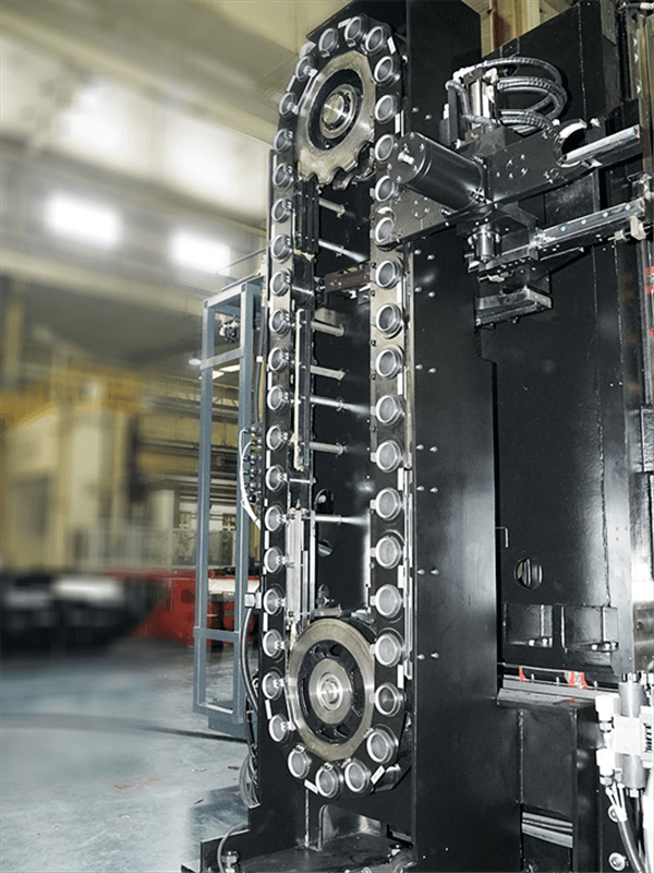 刀庫可以對重型刀具進行穩(wěn)定和準確的刀具交換,刀庫外圍全封閉護罩可以使操作人員安心的進行刀具交換和裝卸。