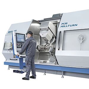 新型M30/M35、M30-G/M35-G系列機床是創(chuàng)新與標準的結(jié)合。這一小型多功能車-鉆-銑中心可加工旋徑達520mm的復雜軸類及 盤類零件,且加工長度達2000mm。它既可以作為一臺車床、一臺6 軸加工中心、如需要還可作為切齒或深孔鉆機床。