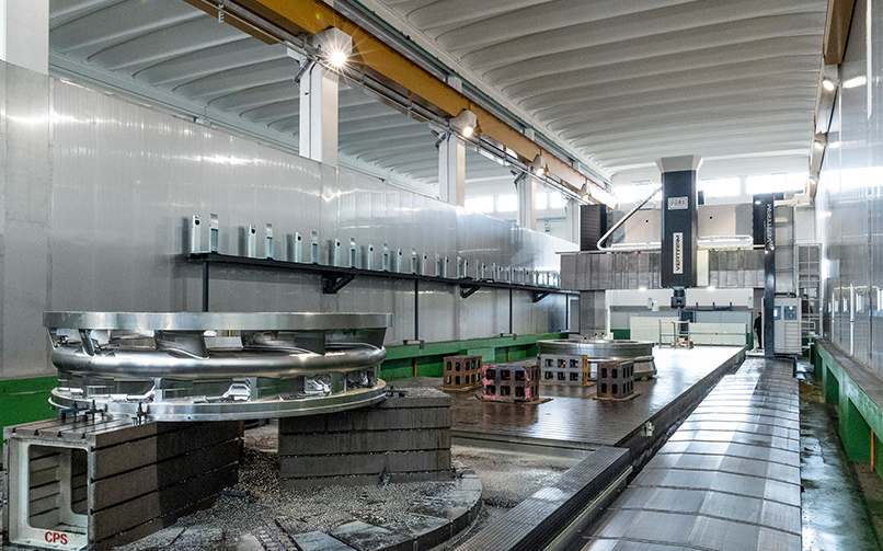 PAMA Vertiram GT 機(jī)器的焦點(diǎn)是滑枕,由靜壓墊引導(dǎo)在主軸箱內(nèi)部,具有實(shí)時(shí)反饋系統(tǒng),可補(bǔ)償溫度變化引起的任何伸長(zhǎng)。該解決方案保證了最 大的精度和剛度,以及非常接近振動(dòng)產(chǎn)生位置的高阻尼。