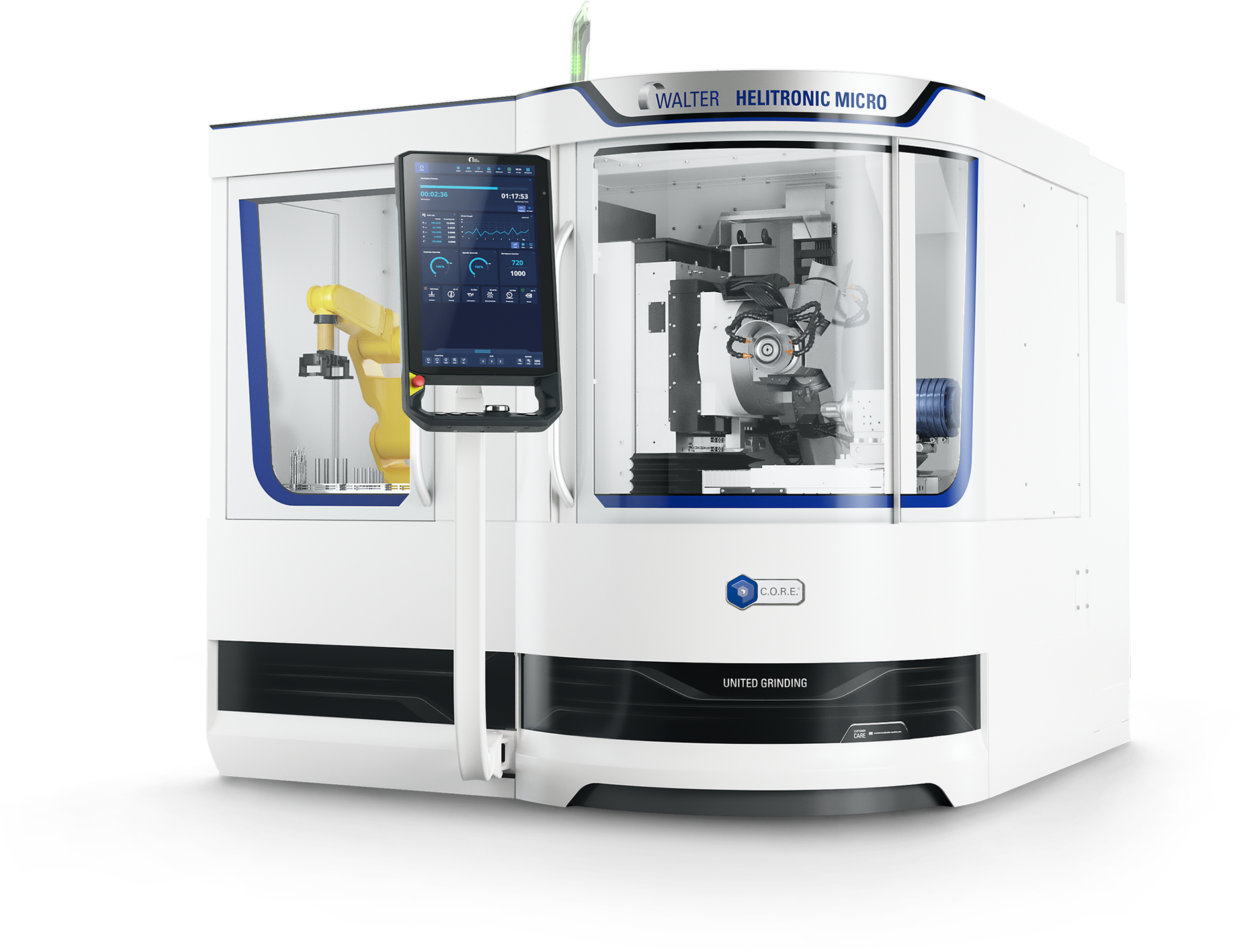 6軸數(shù)控機(jī)床針對加工微小刀具并配置有特殊設(shè)計的混凝土床身。所有軸均為直驅(qū)以實現(xiàn)高生產(chǎn)率和高精度。機(jī)器人裝載機(jī)系統(tǒng)。